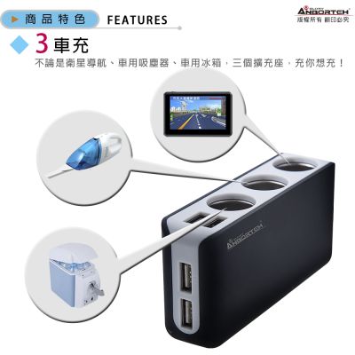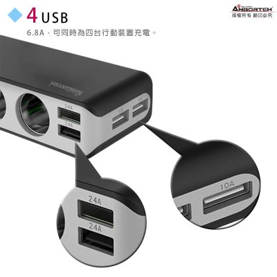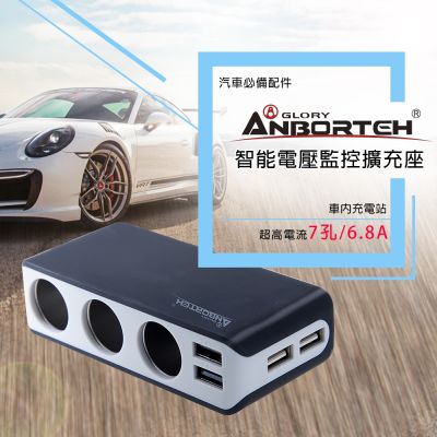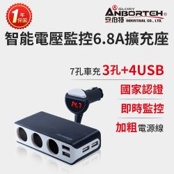 【安伯特】酷電大師 智能電壓監控6.8A 7孔車充3孔+4USB (國家認證 一年保固) -快