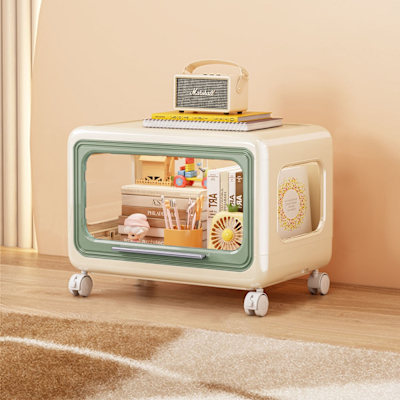 【AOTTO】 奶油撞色附輪翻蓋可疊加折疊收納箱(收納箱 折疊箱 玩具箱 展示盒 書櫃)