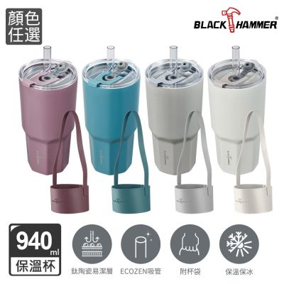 【BLACK HAMMER】鈦芯涼不鏽鋼保溫保冰吸管杯860ml-多色可選