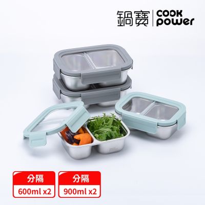 【CookPower 鍋寶】可微波分隔不鏽鋼保鮮盒4件組(1200mlX2+870mlX2)