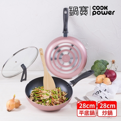 【CookPower 鍋寶】金鑽不沾大尺寸雙鍋組(34CM炒鍋含蓋+30CM煎鍋+鏟) (兩色任選)