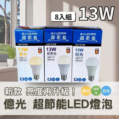 8入 Everlight 億光 13W 超節能高效環保LED燈泡 (白光/黃光/自然光) 8入組$664