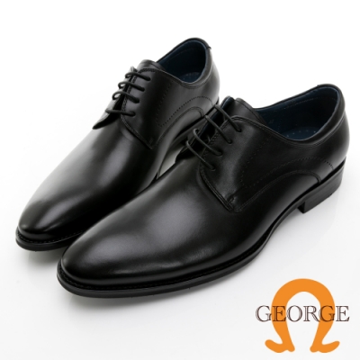 【GEORGE 喬治皮鞋】核心氣墊 真皮素面綁帶德比鞋 -黑 335011CZ10