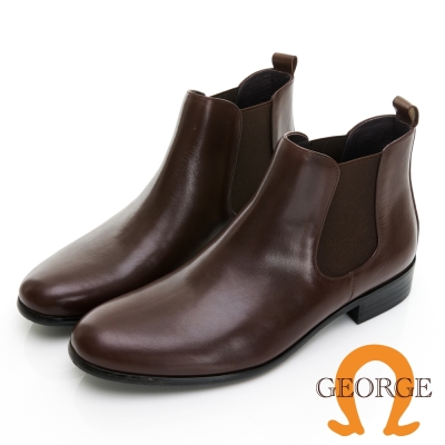 【GEORGE 喬治皮鞋】素面真皮切爾西短靴 -咖 216003JI20