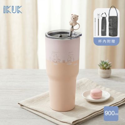 【IKUK 艾可】 真陶瓷保溫杯-真陶瓷吸管杯冰霸杯900ml贈5件組(吸管杯/陶瓷保溫瓶/大容量保冰杯/飲料環保杯)$99984折