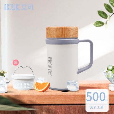 【IKUK艾可】真陶瓷保溫杯-濾茶器瓷芯上蓋手把保溫杯500ml(辦公杯/陶瓷保溫瓶/咖啡保溫杯/保溫瓶)$1,8009折