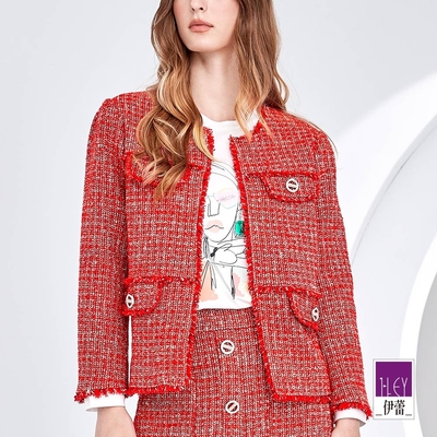 ILEY伊蕾 格紋花呢小香方領七分袖洋裝(紅色;M-XL)1234547005$1,8729折