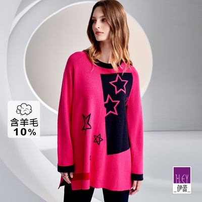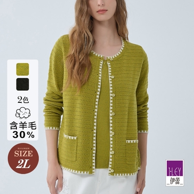 ILEY伊蕾 撞色滾邊提織混羊毛假兩件針織上衣(兩色;M-2L)1234455407$1,3329折