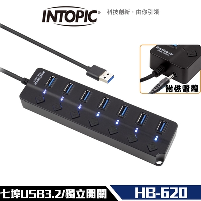 INTOPIC 廣鼎 USB3.2 7孔高速集線器(HB-620)-7埠