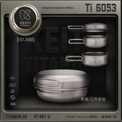 Keith 鎧斯鈦三件式套鍋 680ml / Ti6053.環保鍋具 純鈦套鍋 露營折疊鍋 輕量化餐具 登山三件套鍋$1,360