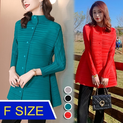 [KEITH-WILL]韓國優雅氣質三宅輕褶衣洋裝(壓褶/中大尺碼/長袖/輕薄/小香風)