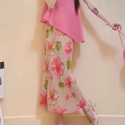 [韓國精品組合]【KEITH-WILL】三宅風格壓褶褶皺素面印花洋裝(壓褶 中大尺碼 輕薄 小香風 多款任選)
