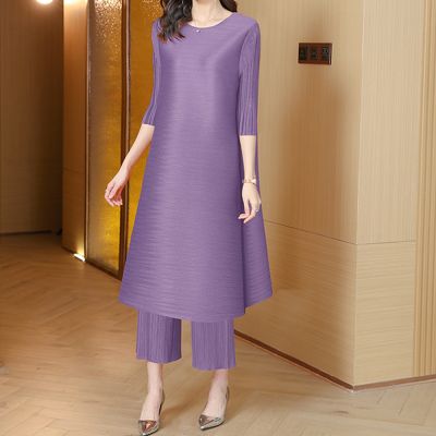 [韓國精品組合]【KEITH-WILL】韓國三宅褶衣素色上衣下著成套系列(壓褶/中大尺碼/修身/輕薄/小香風)