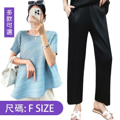 [韓國精品組合]【KEITH-WILL】韓國空運素色三宅壓褶風輕奢套裝系列(三宅/褶皺風/上衣/哈倫褲/小香風)$65683折