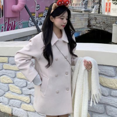 La Belleza素色荷葉領內裡仿水貂毛加絨加厚木耳邊半立領保暖針織上衣