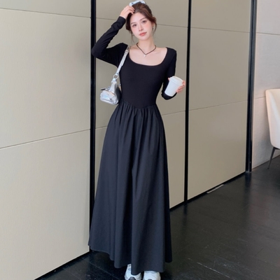 La Belleza名媛貴婦風V領素色仿水貂毛軟糯毛毛包臀柔軟針織毛衣短洋裝$499