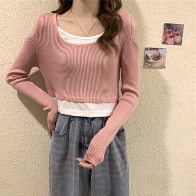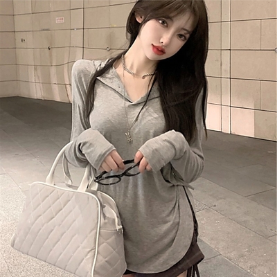 La Belleza極簡風V領素色軟糯柔軟寬鬆落肩保暖針織毛衣$404$425