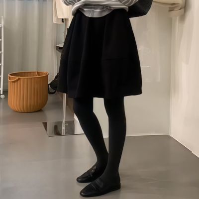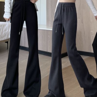 MOCO黑色鬆緊腰高腰垂墬感闊腿褲九分褲L~5XL