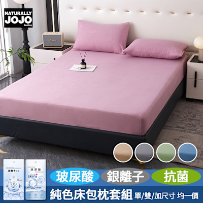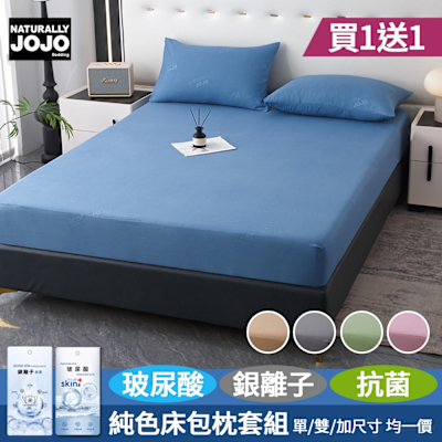 【JOJO】買1送1 糖色玻尿酸銀離子抗菌床包枕套組(單人/雙人/加大 均一價/素色/床包/枕套)$599