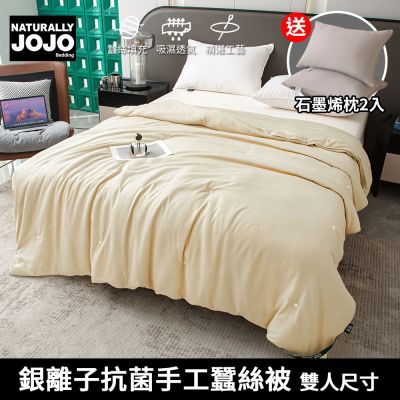 【JOJO】送石墨烯枕2入-銀離子抗菌手工蠶絲被(雙人尺寸/素色/保暖/棉被/冬被)$999