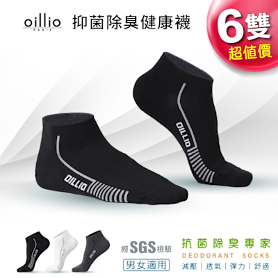 【oillio歐洲貴族】6雙組 抑菌除臭短襪 透氣 經典品牌襪 男女適合 (適合24-28cm) 臺灣製$599