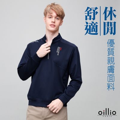 oillio歐洲貴族 男裝 長袖立領T恤 防風 圓領衫 簡約設計 下縮口 防皺 藏青色 法國品牌 有大尺碼$99089折
