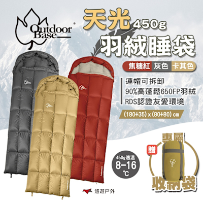 Outdoorbase 天光羽絨睡袋 450g 3色 頭枕可拆 信封睡袋 野營睡袋 露營 悠遊戶外$3,344$3,980