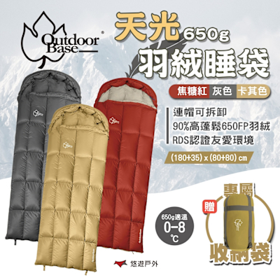 Outdoorbase 天光羽絨睡袋 650g 灰 頭枕可拆 信封睡袋 野營睡袋 露營 悠遊戶外$4,184$4,980