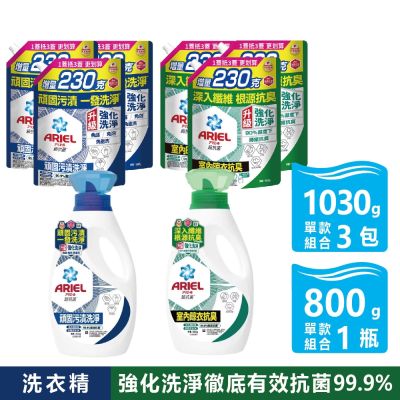 【P&G】超濃縮抗菌洗衣精1+3 抗菌去漬/室內晾衣 (800G+補充包1030gX3)$599