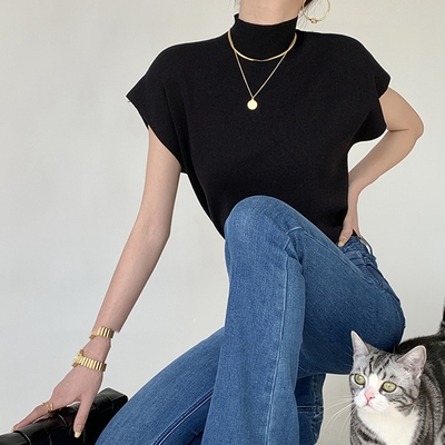 【Paiya 派亞】半高領坎肩針織馬甲女T恤寬松夏季休閑新款短款短袖上衣(均碼S-2XL可穿)