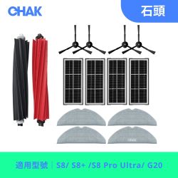【CHAK】Roborock石頭 S8/ S8+ /S8 Pro Ultra/ G20副廠配件(主刷x1 邊刷x4 活性碳濾網x4 雙震動拖布x4)