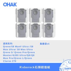 【CHAK】Roborock石頭 S8 MaxV Ultra/ Qrevo 系列副廠掃拖機配件集塵袋超值組(6入組)