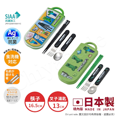 【百科良品】日本製 我的世界 創世神 Minecraft 麥塊 環保筷子+湯匙+叉子三件餐具組 抗菌加工Ag+(日本境內版)-任選款$429$451