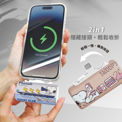 SNOOPY史努比 雙頭口袋充 直插式行動電源 5000mAh_18.25Wh_具Wh標示