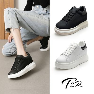 T2R-正韓空運-免綁帶真皮內增高厚底小白休閒鞋-增高約10公分-黑/白