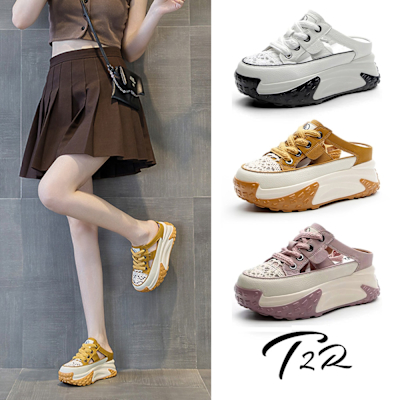 T2R-正韓空運-超纖皮革厚底內增高穆勒鞋-增高約7公分-白/黃/粉
