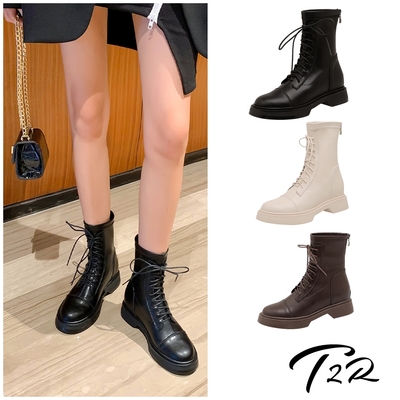 T2R-正韓空運-真皮簡約時尚內增高短筒馬丁靴-增高約8公分-黑/白