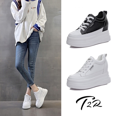 T2R-正韓空運-免綁帶真皮內增高厚底小白休閒鞋-增高約10公分-黑/白