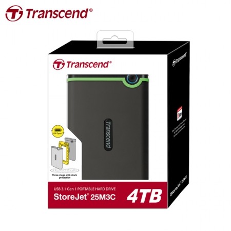 Transcend創見 StoreJet 25M3C 4TB 軍規防震Type-C 2.5吋行動硬碟-太空灰(TS4TSJ25M3C)