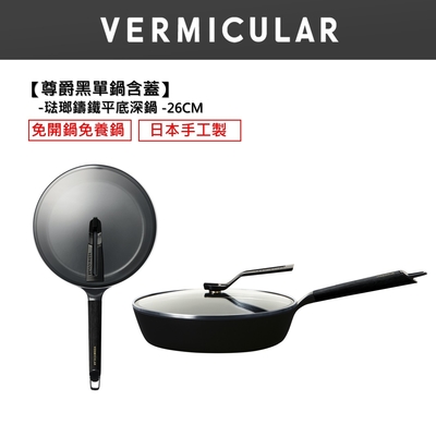 【日本VERMICULAR】琺瑯鑄鐵平底鍋24cm+24cm專用鍋蓋-黑胡桃$7,900
