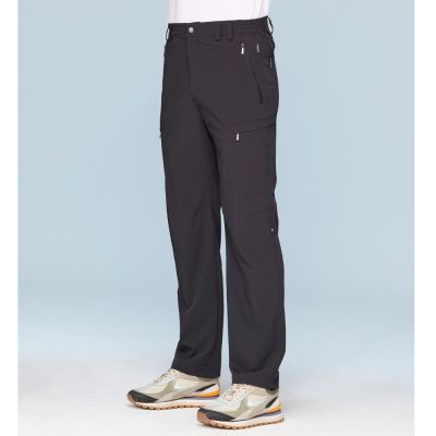 【荒野 WildLand】男 四向彈性抗UV貼袋長褲.休閒運動褲.工作褲_S1398-54 黑色