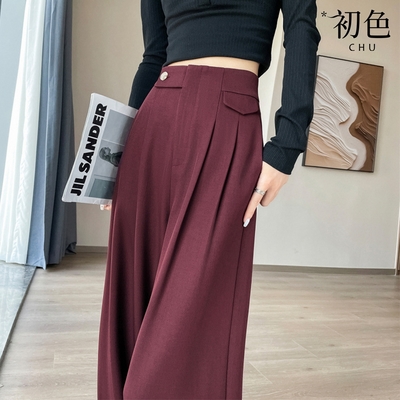 初色 簡約高腰工裝寬褲長褲-共2色-66608(M-2XL可選)$299