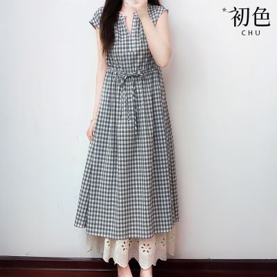 初色 氣質繫帶收腰連身裙-共2色-98637(M-2XL可選)$299