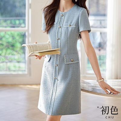 初色 日韓系小香風純色加厚圓領毛呢大衣休閒外套-共5色-64171(F可選)$369