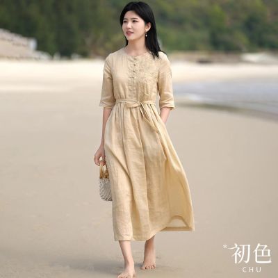 初色 復古熱帶印花棉麻寬鬆背心洋裝-共2色-61796(M-2XL可選)$249