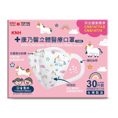 KNH-康乃馨 3D立體兒童醫療口罩(未滅菌)-彩虹獨角獸(30片/盒裝)