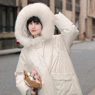 [米蘭精品] 真羽絨90%鴨絨羽絨外套羽絨衣夾克-保暖狐狸毛領長款連帽女外套2色74iq46$7,999