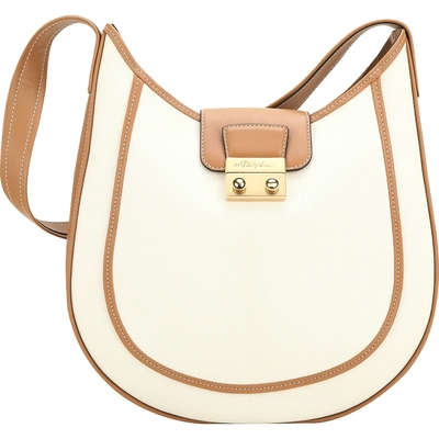 3.1 Phillip Lim Pashli 大款 明線牛皮拼接帆布肩背流浪包(棕x米白)