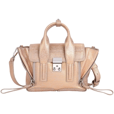 3.1 Phillip Lim Pashli 展示品 迷你款 壓紋牛皮玫瑰金色手提/斜背包(背帶邊膠脫落)