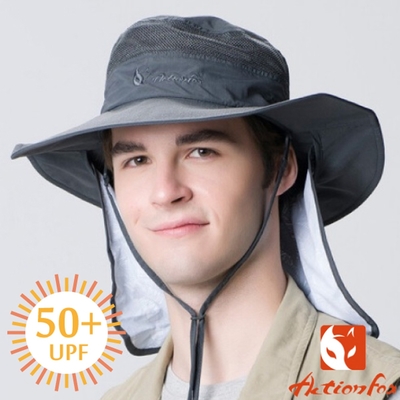 ACTIONFOX 新款 登山抗UV抗菌透氣快乾遮陽帽(可收納護肩) UPF50+.中盤帽.漁夫帽_深灰